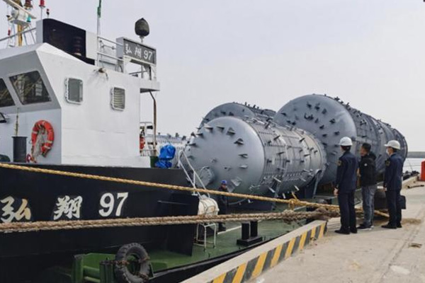 3月9日上午,由威海石島重工有限公司制造的超大型裝備在石港新港裝船啟運(yùn)。該批設(shè)備是石島重工為海南某石油化工企業(yè)生產(chǎn)的主反應(yīng)器,共7件,其中4件直徑7米、長14米,每件重達(dá)90噸。這也是企業(yè)節(jié)后復(fù)工以來…